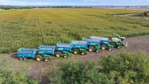 Az összes pótkocsink kivette a részét a szállításból, a silózónak nem kellett várakoznia. Feltettük a magasítókat és indulhatott is a munka; magasító szettjeink több konfigurációban is
